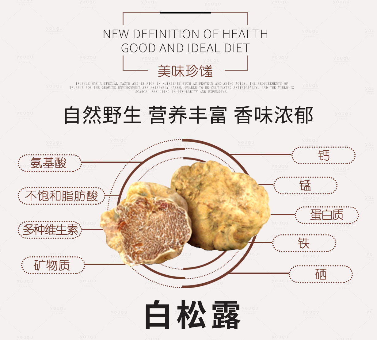 3. 豐富的營養價值: 黑松露富含蛋白質、氨基酸、維生素和礦物質等營養成分,具有增強免疫力、抗氧化、延緩衰老等功效,是名副其實的“超級食品”。