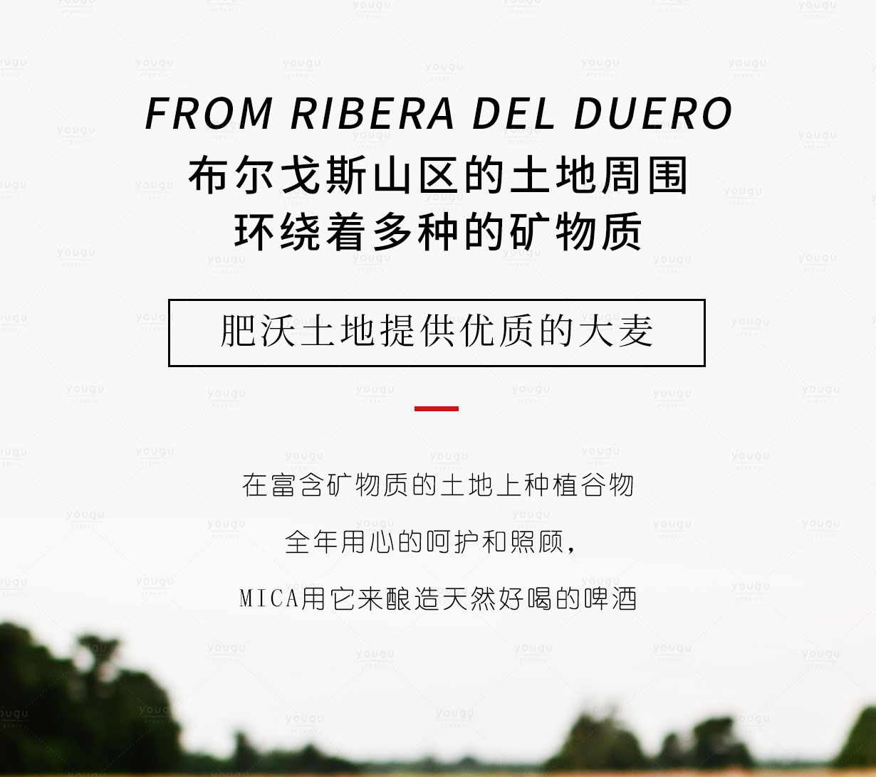 有谷國際標識由“在金色麥田上飛翔的鳥兒” 為標識主視覺,并附以“有谷—YOUGU” “有機—organic”(即“有谷有機”)英文字體組合而成。 金色的麥田代表了豐收的喜悅, 飛翔的鳥兒代表了生命與自然、 同時也代表了視界的高度與心中有愛。