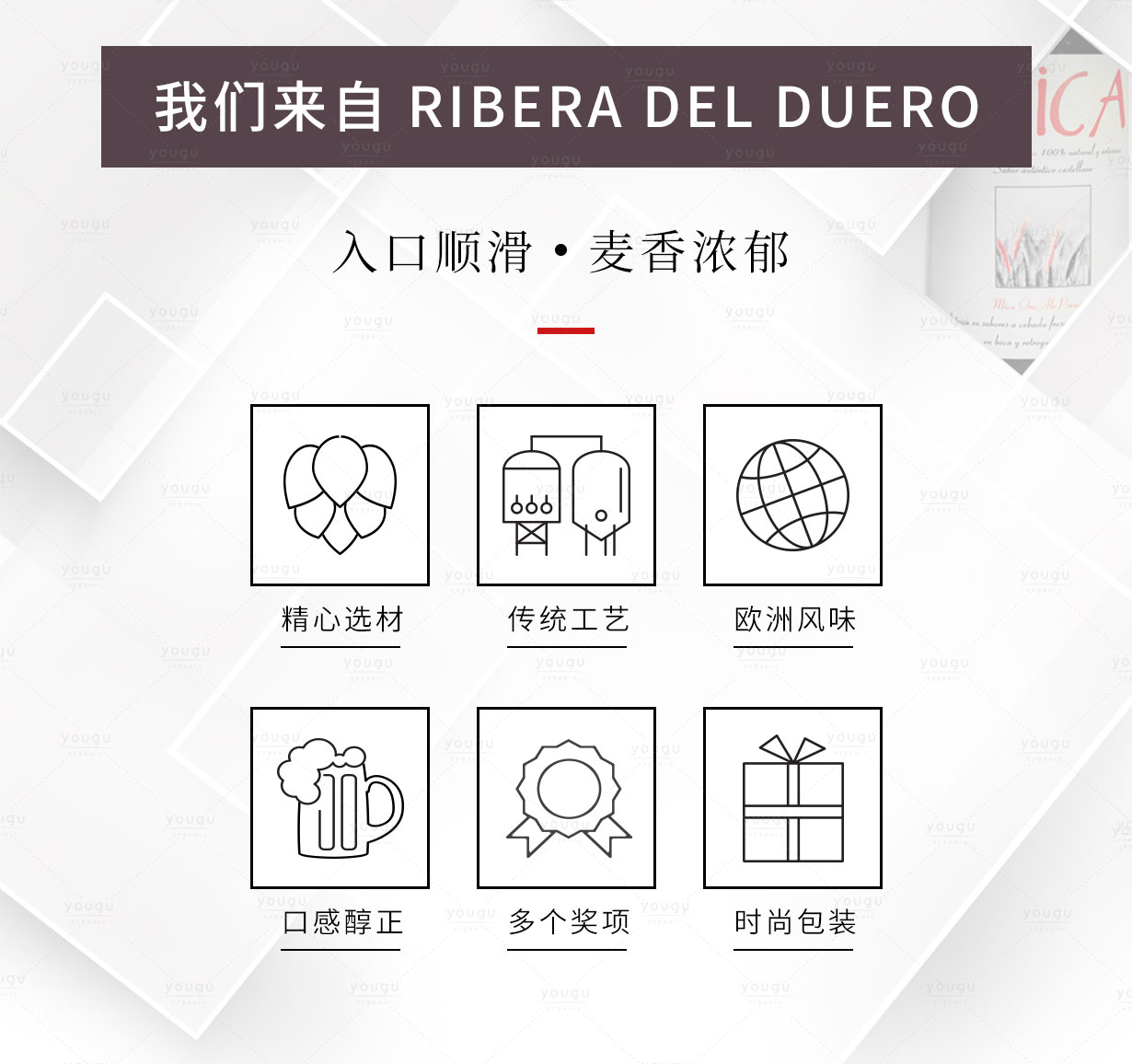 西班牙原裝進口,口感和諧清新,啤酒花味道非常宜人,且帶有精致干爽的杏仁味。